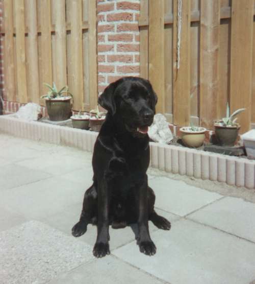 Het is een Reu Labrador Retriever (19 juni 1995 - 30 maart 2009).